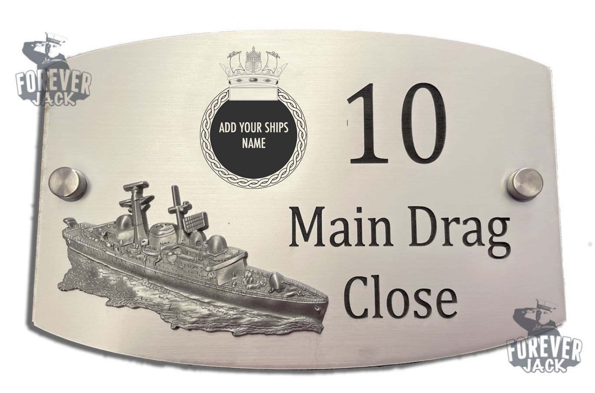 We then add a metal 3D model of the type 42 destroyer (batch 1) and the ships badge that is laser etched above the ship as shown.