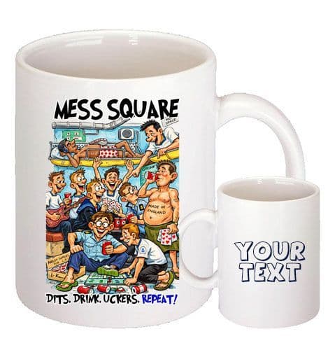 10oz White 'Durham' Mug with our very own new design to the front and your message, name or other text to the other side.